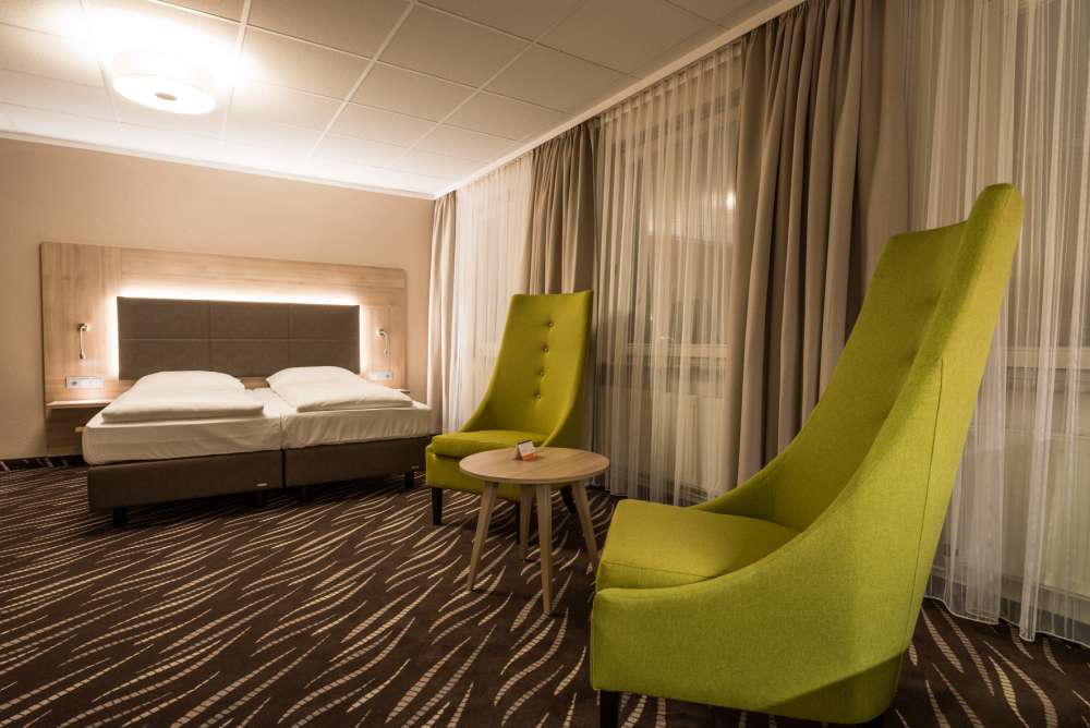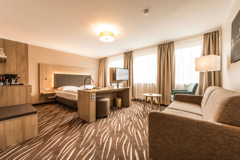 Sie haben einen Hofstaat dabei oder möchten in Ihrem Zimmer eine Audienz halten? Im Doppelzimmer Superior mit seinen 33 qm muss sich niemand auf den Füßen stehen. Die wohnlichen Buchenholzmöbel und der weiche Teppich sorgen für eine behagliche Atmosphäre und in den bequemen Sitzmöbeln mit Ausziehcouch wird Ihnen der Tag garantiert nicht zu lang – selbst wenn Sie mal wieder einen Besucher mehr zum Ritter schlagen müssen. Majestät reisen allein? Dann buchen Sie dieses Gemach einfach als Einzelzimmer Superior.